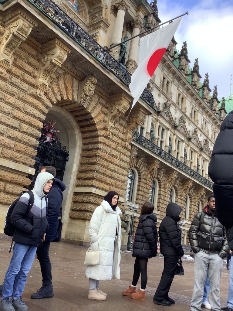 Der Besuch im Hamburger Rathaus war für die SchülerInnen ein besonderes Erlebnis. Die Schülerinnen und Schüler konnten live eine spannende und teils kontroverse Debatte der Bürgerschaft zum Thema eines möglichen AfD-Verbots mitverfolgen und so Politik hautnah erleben. Der Besuch bot einen eindrucksvollen Einblick in die parlamentarische Arbeit und zeigte, wie lebendig und aktuell politische Diskussionen in Hamburg geführt werden.