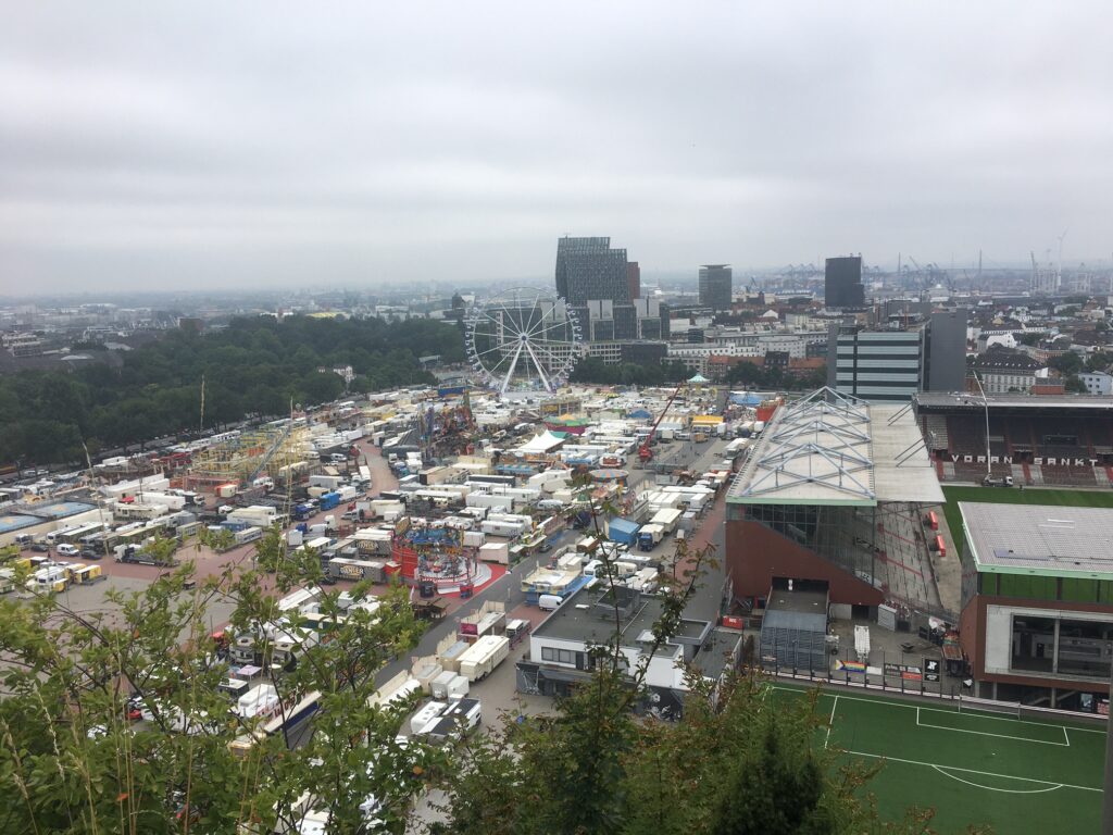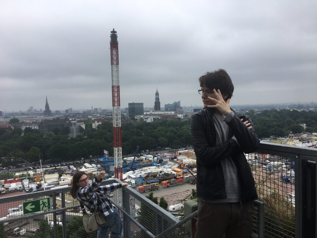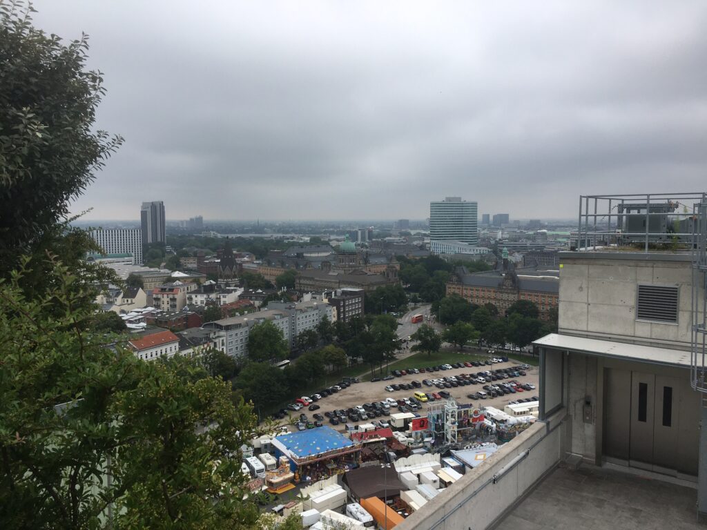 Historiker und Historikerinnen blicken viel in der Zeit zurück, was sie dabei vor allem aber brauchen ist ein Überblick. Und so führte uns der Wandertag unmittelbar vor den Sommerferien 2025 auch buchstäblich ganz hoch hinaus über die Dächer von Hamburg, nämlich auf den historischen und mittlerweile begrünten Hochbunker am Heiligengeistfeld in der Mitte von Hamburg. Dem fantastischen Ausblick und der dramatischen Szenerie entsprachen dabei die dramatischen Posen.