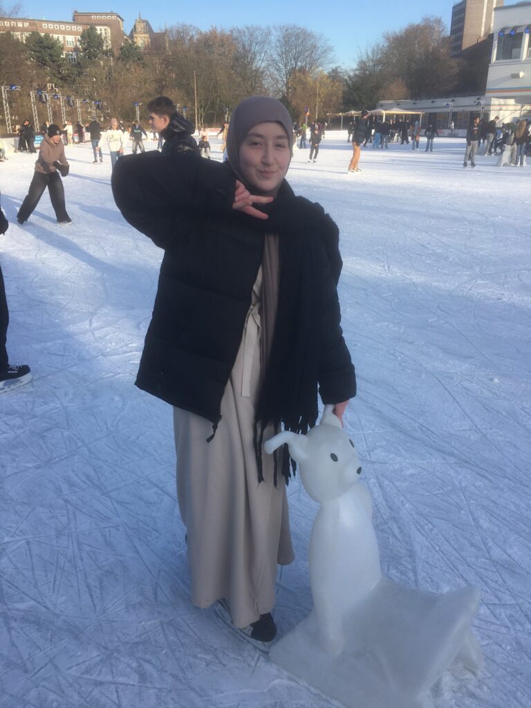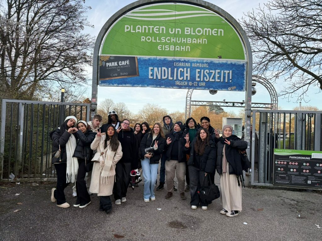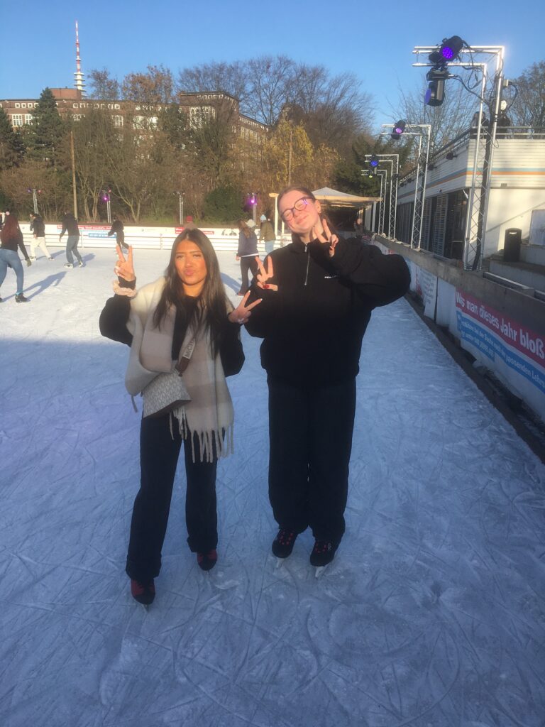 Unser Profil beschloss das Jahr 2025 am letzten Tag vor den Winterferien 2025 auf der Eisbahn in Planten un Blomen. Im Anschluss ging es dann noch auf den Weihnachtsmarkt auf dem Rathausmarkt. Dass wir nicht nur auf dem historischen Parkett bella figura machen, kann man den folgenden Impressionen entnehmen. Und sollten unsere Kunstfertigkeit im Eislauf unseren Fähigkeiten im Fach Geschichte entsprechen, sollte uns auch der unsichere Boden des Abiturs keine Probleme bereiten.
