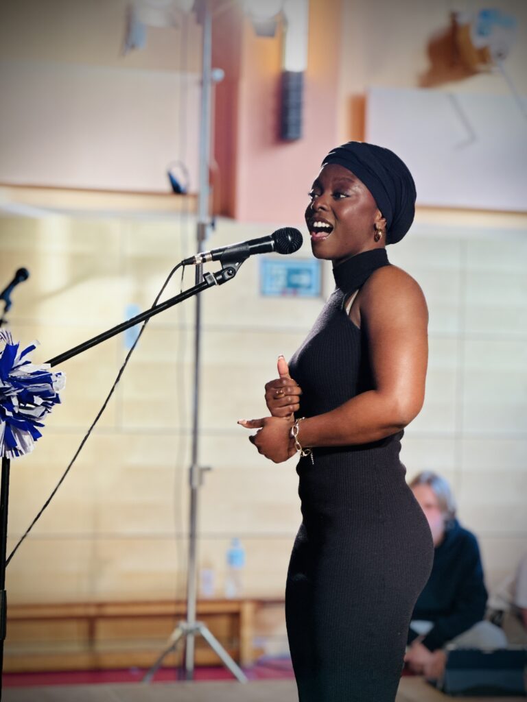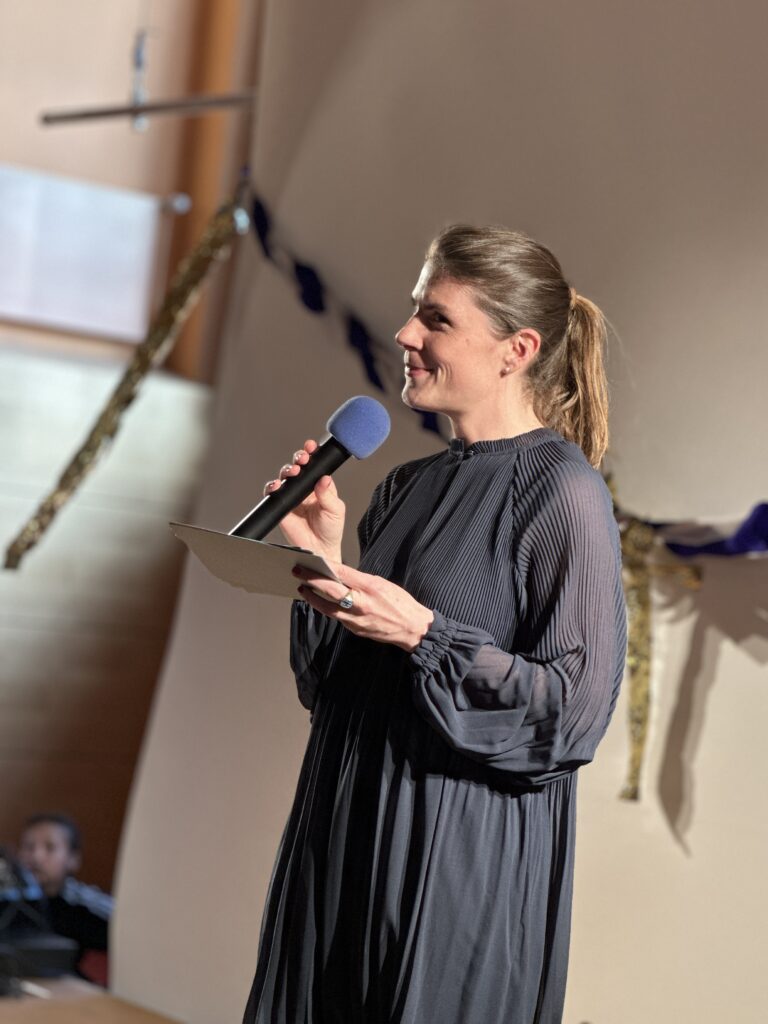 Unsere ehemalige Schülerin Precious eröffnete den Abend mit einer beeindruckenden Gesangsperformance und stimmte das Publikum – bestehend aus Preisträger*innen, Eltern, Freund*innen sowie Kolleginnen und Kollegen – auf einen besonderen Abend ein.