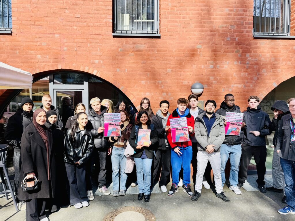 Im Rahmen des Themenbereichs „Soziale Ungleichheit“ im PGW-Unterricht besuchte der Kurs das Straßenmagazin Hinz&Kunzt. Bei einem besonderen Stadtrundgang bekamen die Schüler*innen Einblicke aus erster Hand: Ein ehemaliger obdachloser Stadtführer berichtete von seinen eigenen Erfahrungen auf der Straße und zeigte Orte, die mit dem Leben von obdachlosen Menschen in der Stadt verbunden sind. Der Rundgang hat viele neue Perspektiven eröffnet und deutlich gemacht, wie wichtig Empathie, gesellschaftliches Engagement und ein genauer Blick auf soziale Ungleichheit sind.