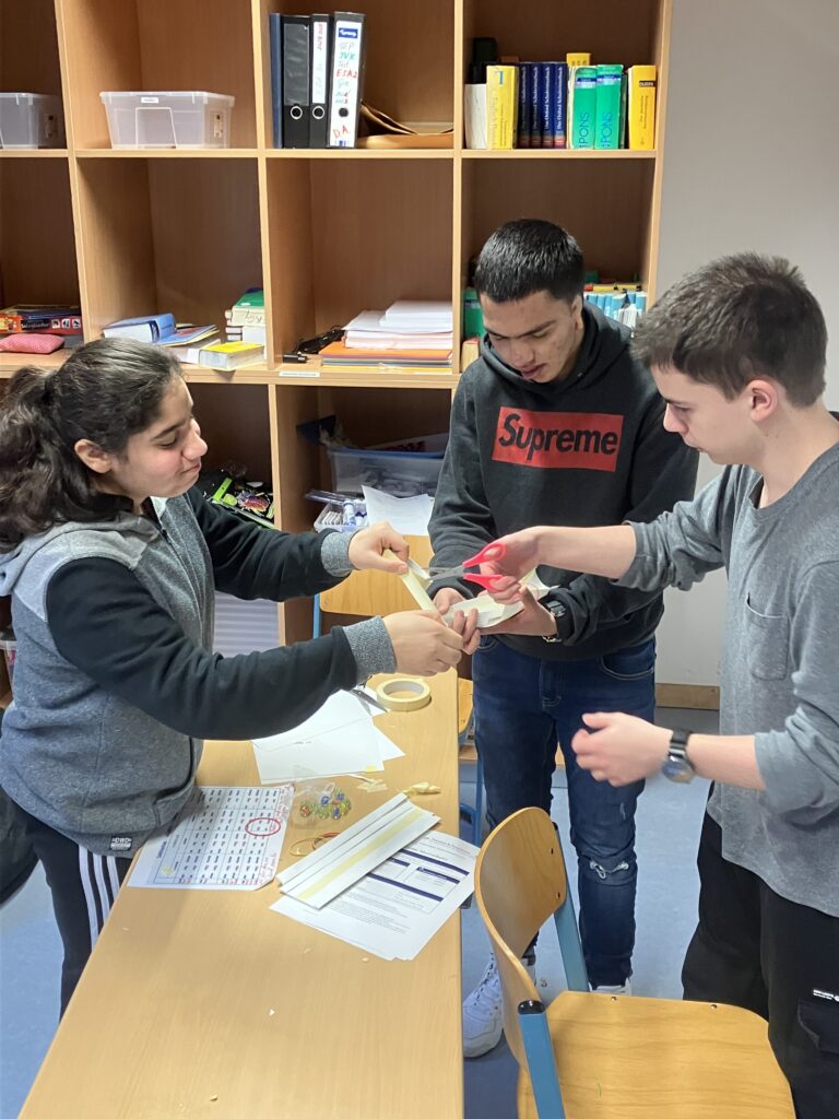 Neben dem Spracherwerb spielen auch die Integration in die Gesellschaft und die Vermittlung kultureller Orientierung eine wichtige Rolle. Neben den wöchentlichen Formaten Klassenrat und sozialem Kompetenztraining arbeiten wir u.a. mit Ehrenamtlichen des Bildungsmentoringprojekts „Ankerlicht“ des Vereins „Schlaufox“ zusammen, gestalten gemeinsame Projekte mit externen Trägern, wie „Fantastische Teens – Schreibwerkstatt für Jugendliche“, besuchen außerschulische Lernorte und nehmen an Wettbewerben Teil, um das Miteinander zu fördern und das Zugehörigkeitsgefühl zu stärken. Bei zwei Langzeitpraktika im zweiten Lernjahr werden zusätzlich praktische Erfahrungen auf vielen Ebenen gesammelt